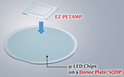 Reducing manufacturing costs and establishing mass production technologies are major challenges for micro-LED displays. Shin-Etsu has developed micro-LED chip-transfer components as well as various equipment and is working with its customers to realize mass production and promote them.