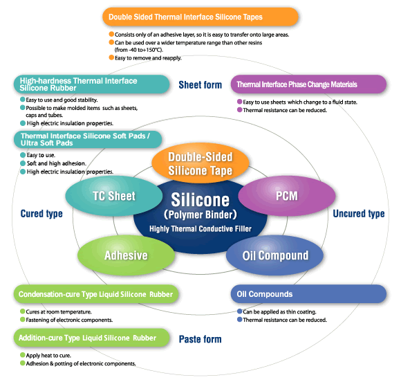 About silicones Thermal Interface MaterialsApplication examplesProduct lineupReference material