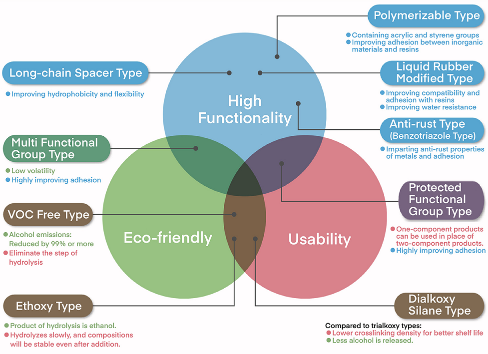 - Silane coupling agent with epoxy group and longer spacer chain than conventional product (KBM-403)
