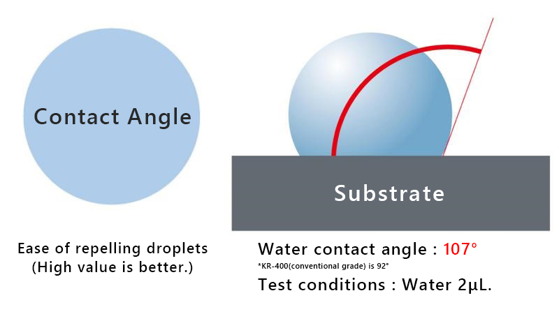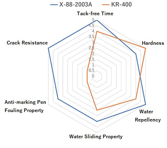 Below are comparison data with KR-400, a typical silicone oligomer-based coating agent.
