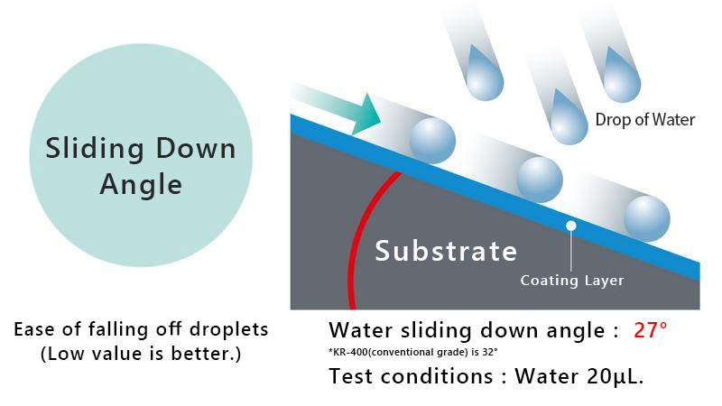 The cured film obtained from X-88-2003A exhibits good water sliding properties.