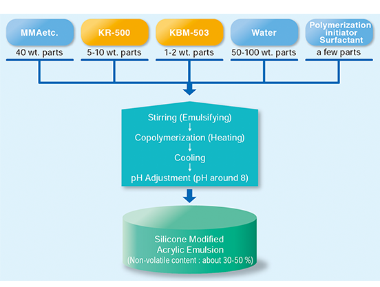 When mixed with organic resins that have reactive groups with methoxysilyl groups or by demethanol reactions, KR-500 can impart heat resistance, weather resistance, and chemical resistance to resins.