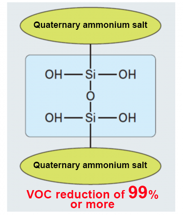 These products are made from a silane with a quaternary ammonium salt structure in an aqueous solution. It removes methanol from hydrolysis, which reduces VOCs by more than 99% when used.