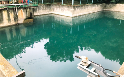 River water taken in is subjected to purification treatment similar to that of waterworks to remove impurities for use as industrial water to produce silicones.