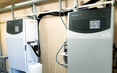 This meter measures amounts of organic substances in water based on the amount of carbon used for monitoring contamination.